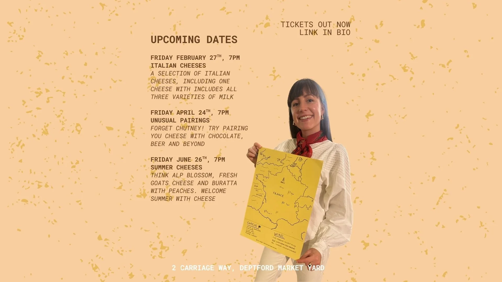 You’ll taste five carefully selected cheeses, each matched with an unexpected pairing, while Lucy explains why certain combinations work — and why others really don’t. The evening is relaxed, social and designed to spark conversation, laughter and discovery.