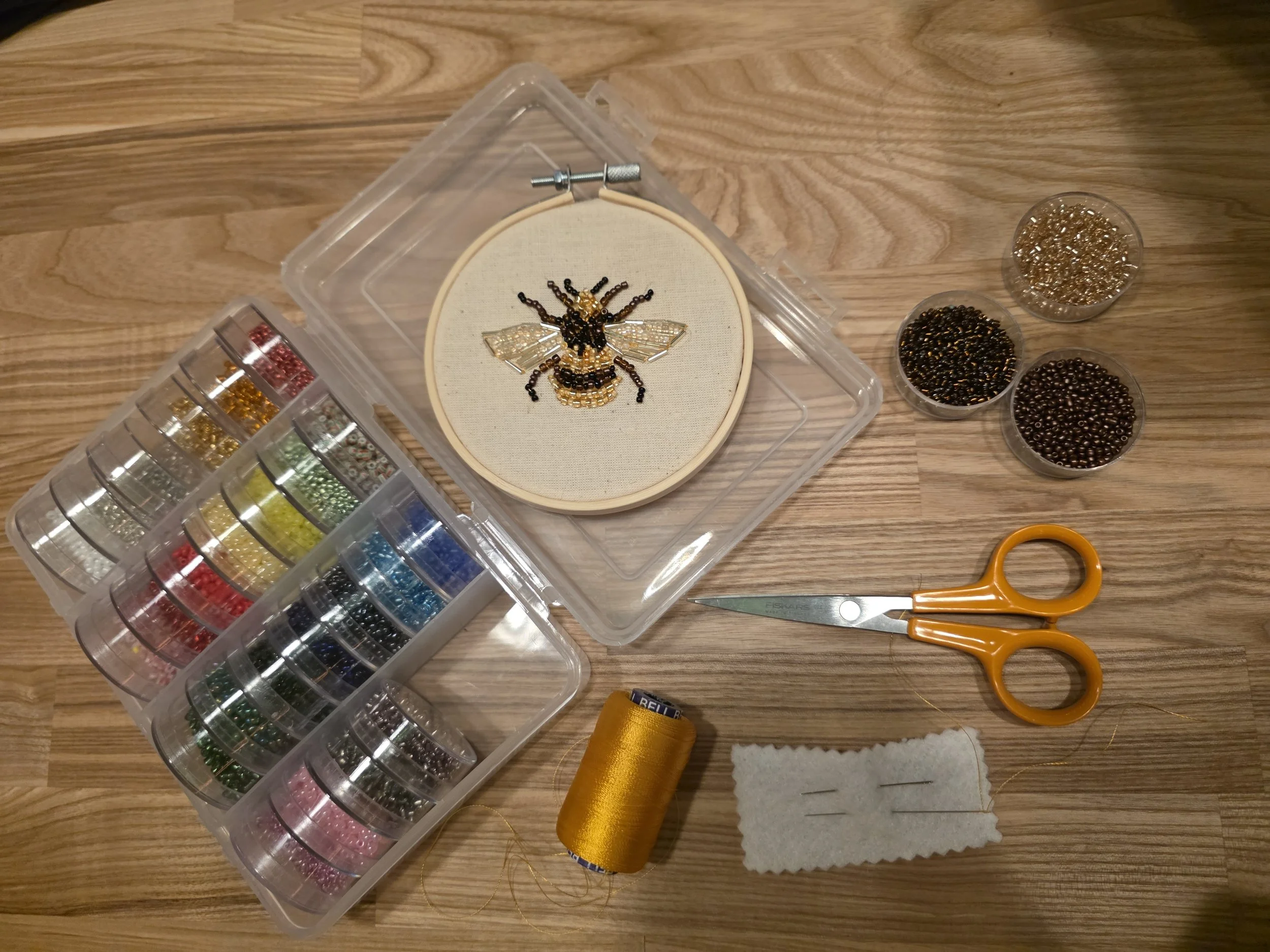 In this relaxed and creative embroidery workshop in London, you’ll learn the fundamentals of bead embroidery while bringing your own beautifully beaded bug to life. Working on fabric set within a small embroidery hoop, you’ll explore a variety of techniques and materials to create something truly unique.