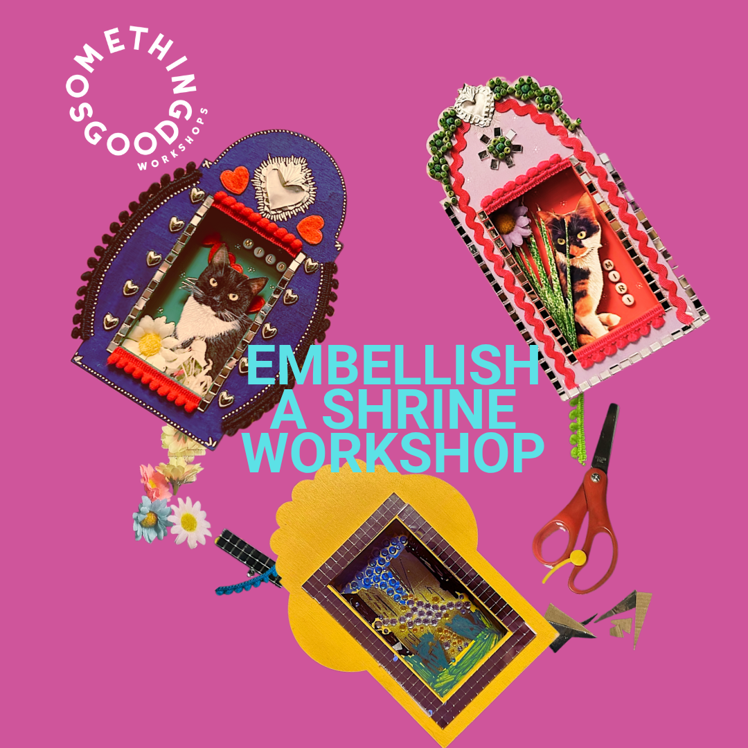 Inspired by traditional devotional folk art - in this joyful workshop, you'll create your own colourful, meaningful shadow box shrine that celebrates someone or something close to your heart. Perfect for anyone seeking a creative way to honour special memories or important aspects of their life, you'll transform a simple wooden shrine into a personal treasure using an array of beautiful materials.