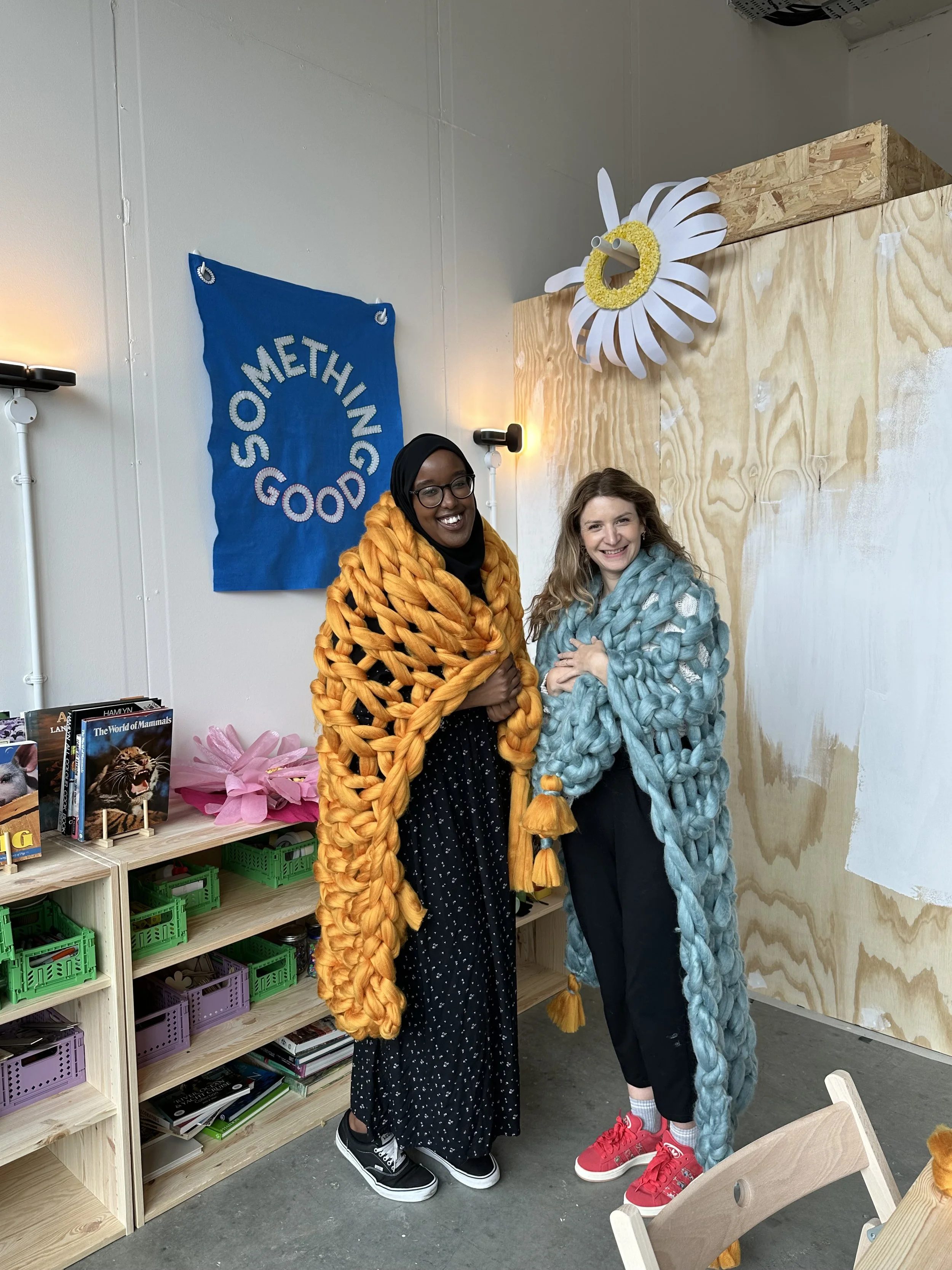 Turn a 2kg giant ball of yarn into a cosy personal blanket with just your arms!