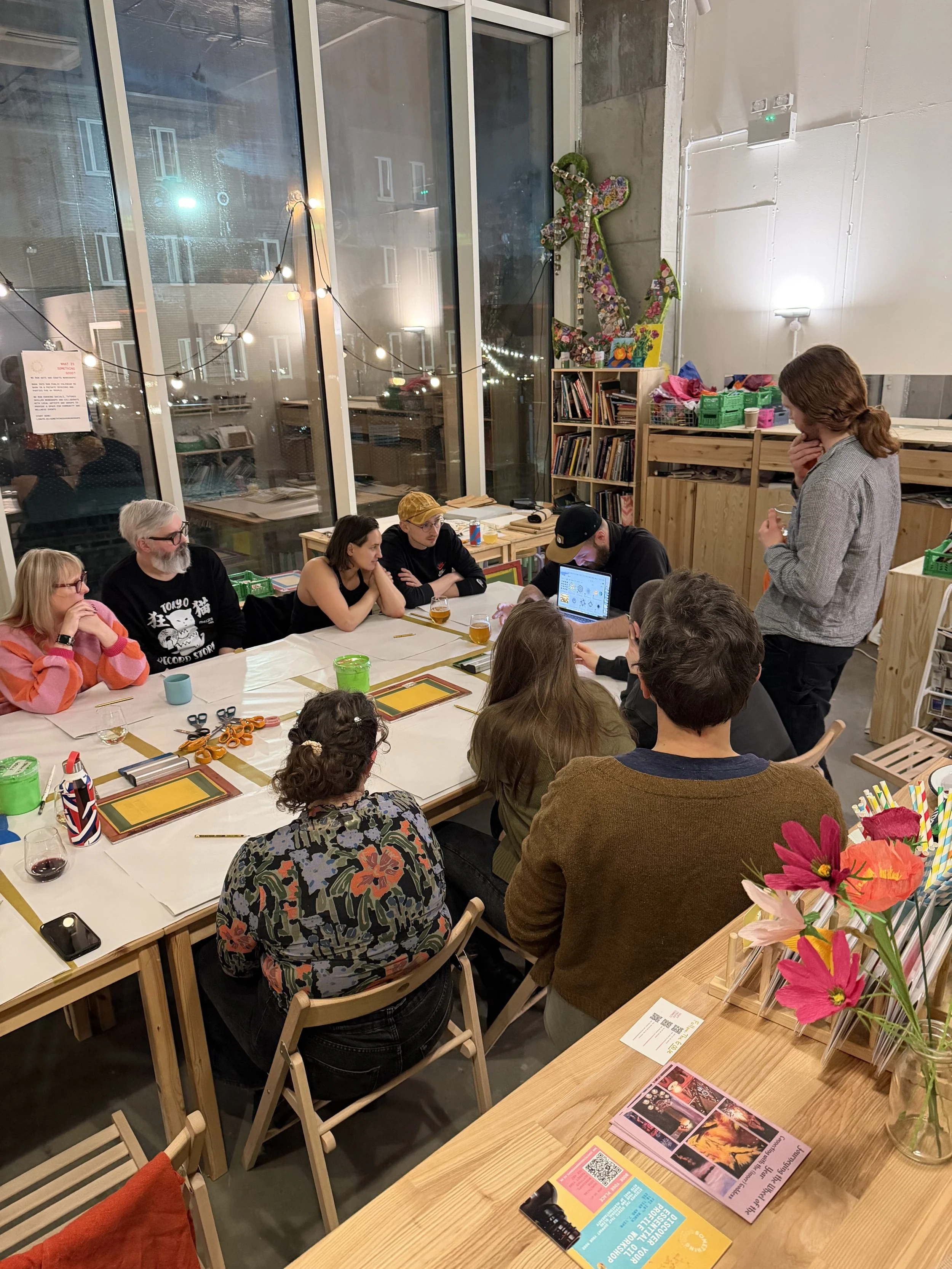 We provide simple materials and a loose structure for a more relaxed, social making session. Think collage or still life painting.