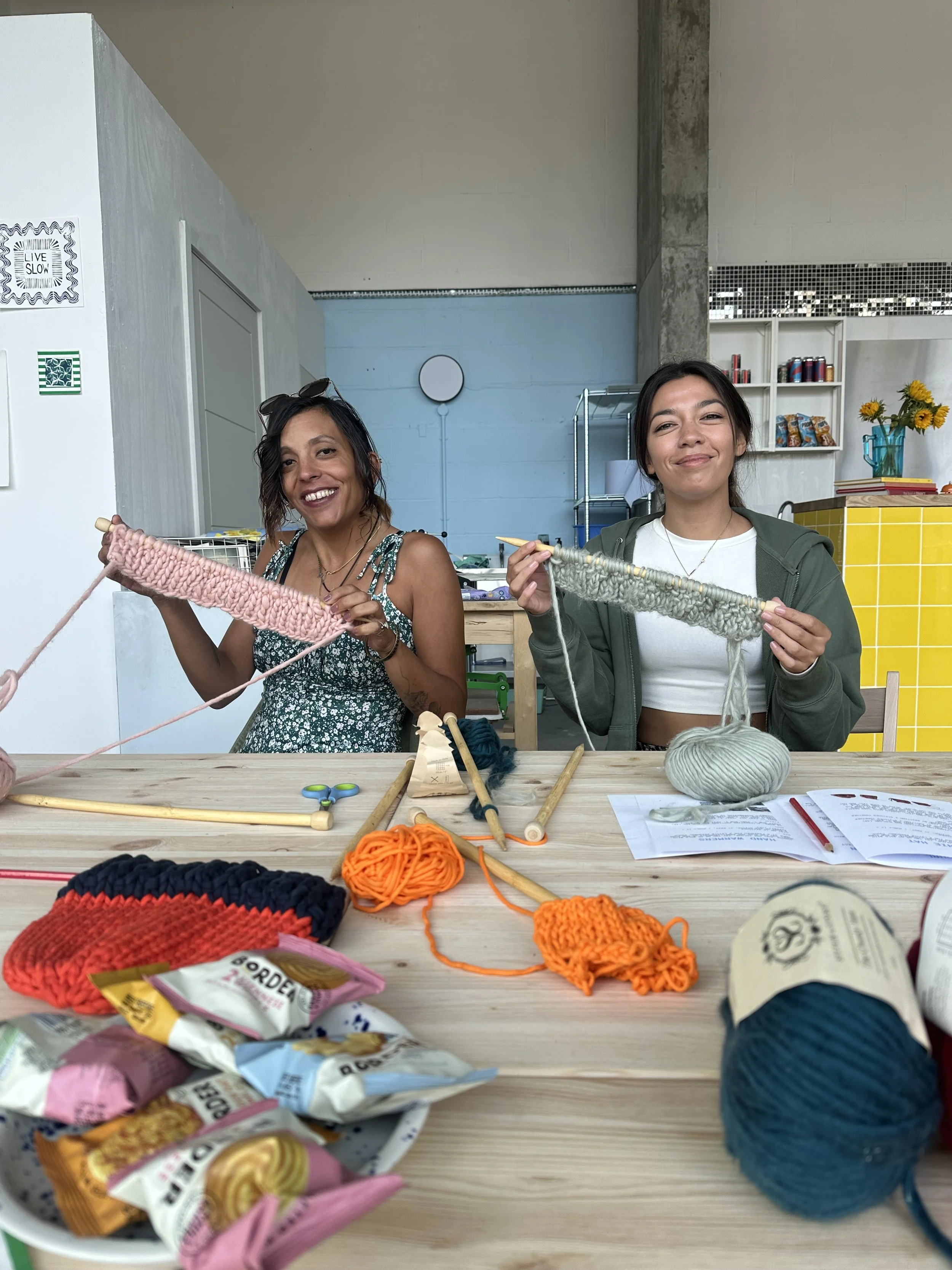 We run creative, beginner-friendly tutored workshops — from chunky arm knitting to collage, gelli printing, and seasonal crafts.
